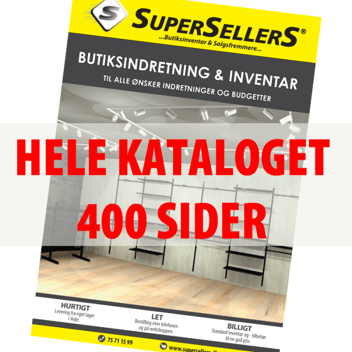 Hos os har vi i mange år hjulpet butikker med alt fra opstart og ombygning til design af showrooms og messestande. Med vores erfaring og brede udvalg af inventarsystemer står vi klar til at rådgive dig, så du kan realisere dine indretningsidéer. Kontakt os på 75 71 15 99 – vi er klar til at hjælpe.