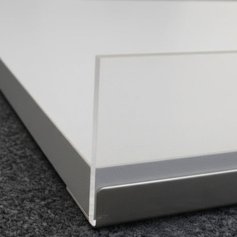 Melaminhylde grå, skrå, med forkant i krom, 91 x 37 cm