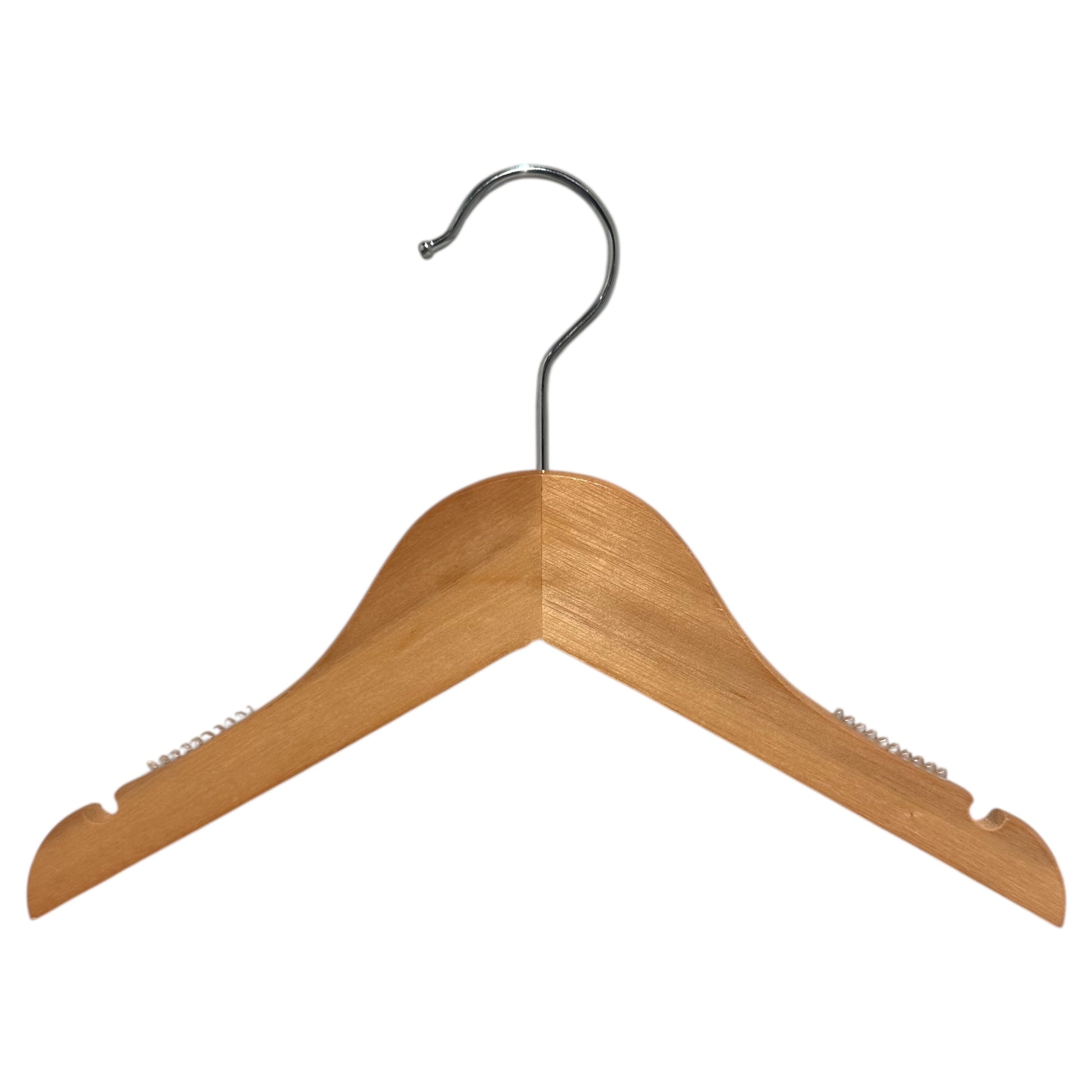 Træbøjle, massiv, flad, baby, med hak og uden stang, natur, 27 cm