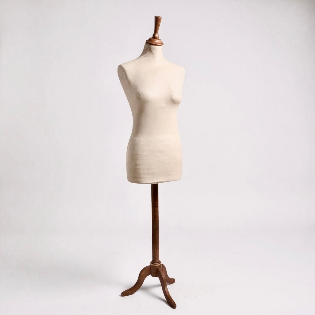 Damgine med linnéfärgat nylontyg på överkroppen. Denna ginställning har 3-bent/träfot och en hög "Shaker" topp i valnöt. Kroppen på denna ginställning är lång.