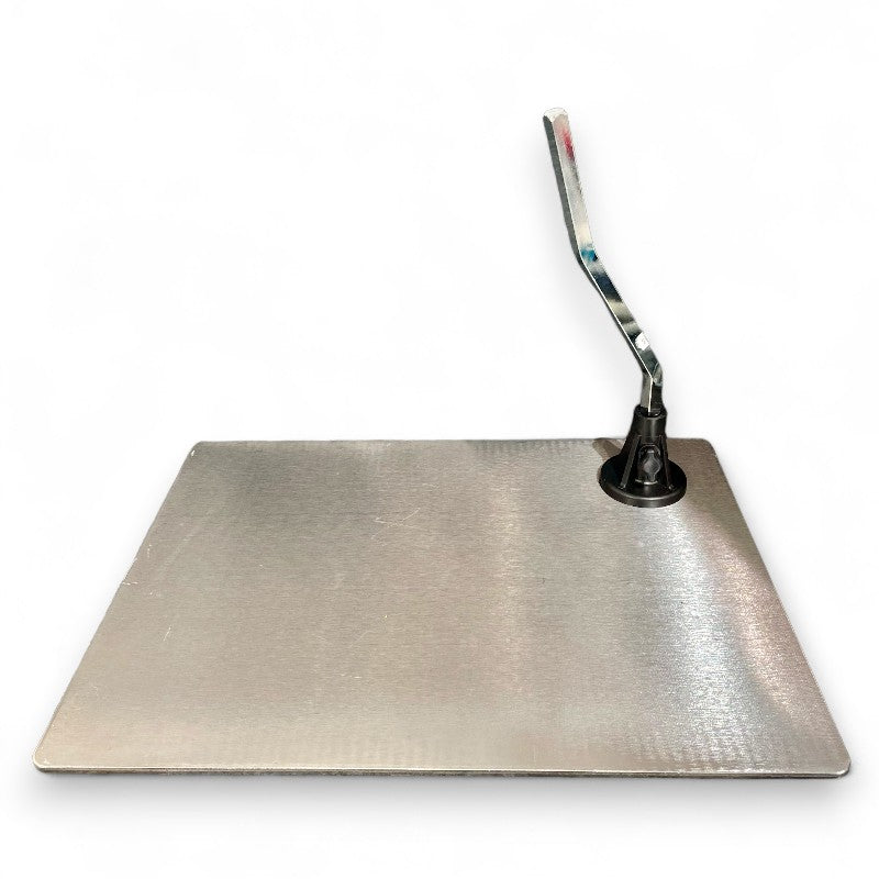 | Fotsula för skyltdocka. Plattan har borstad satinfinish. Fyrkantig med ett hål i hörnet för stödspets. Mått: 30 x 40 cm. 5 mm. Kromat stödspett med svart plastfäste (1x1 cm x H 28 cm). Detta är den kraftiga och tyngsta modellen. Denna fotsula passar bland annat SuperSellerS-mannequinerna 99422, 99423, 99421 och 99420. | Normalpris
