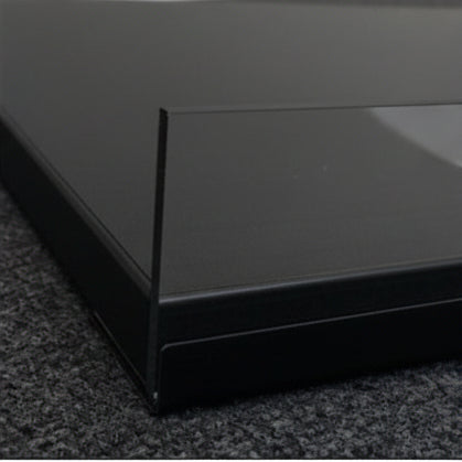Melaminhylla svart, snedställd, med svart framkant, 61 x 37 cm