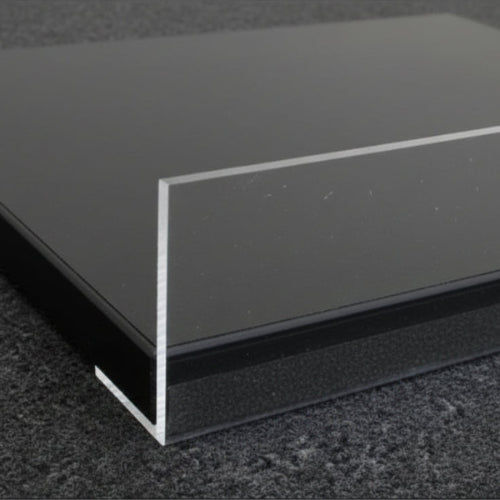 Melaminhylla svart, snedställd, med framkant i svart, 91 x 37 cm