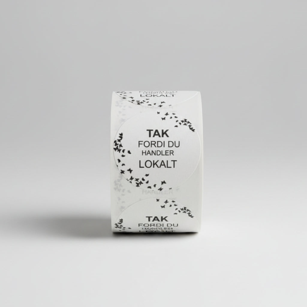 Ett enkelt och stilrent sätt att skicka med ett personligt tack. Perfekt för presentinslagning, påsar, lådor och förpackningar när du vill understryka det lokala engagemanget.
