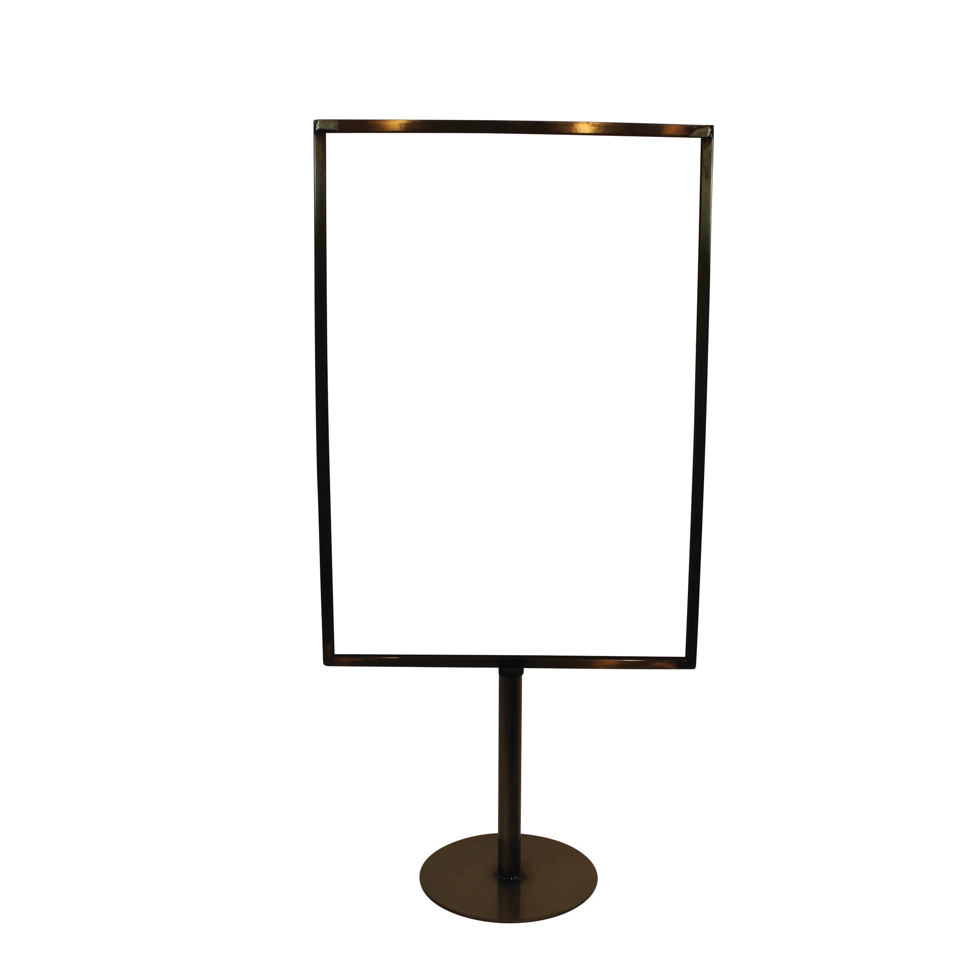 Vår klassiska menykorthållare i metall på en stadig rund metallfot. Vår meny- eller skylthållare passar för alla typer av skyltning. Oavsett om det gäller laminerad skylt, skylt med plastfickor, papper eller kartong kan den sättas i vår menykorthållare. Foten har en fast höjd på 19 cm, men kan förlängas med upp till 15 cm genom köp av en förlängare. Vi rekommenderar också att komplettera med plastfickor för att skydda pappersskylten mot slitage och smuts. Den galvaniserade modellen är särskilt lämplig för utomhusförsäljningsbord, där den tål skiftande väderförhållanden.