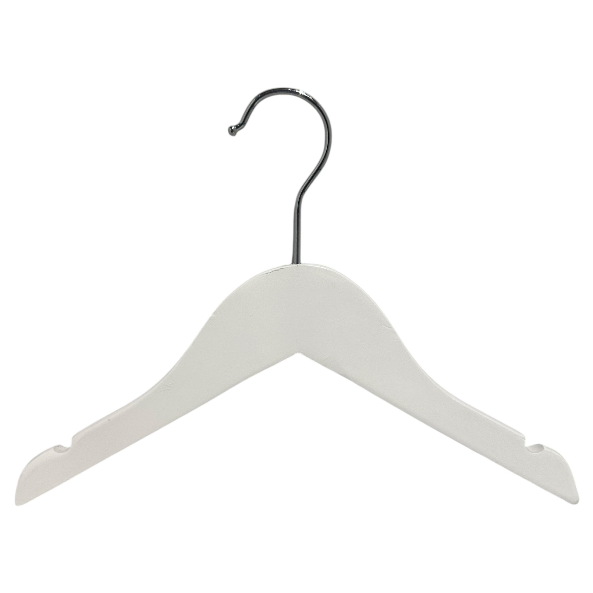 Trähängare, massiv, platt, baby, med hak och utan stång, vit, 27 cm